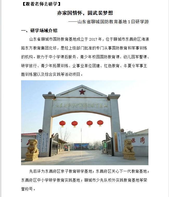 【跟着老师去研学】 亦家国情怀,圆武装梦想——山东省聊城国防教育基地1日研学游